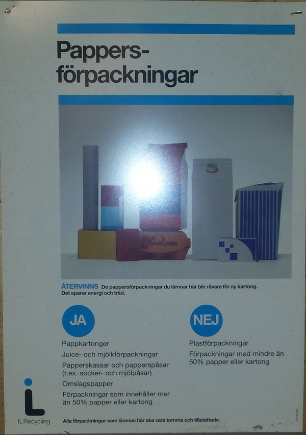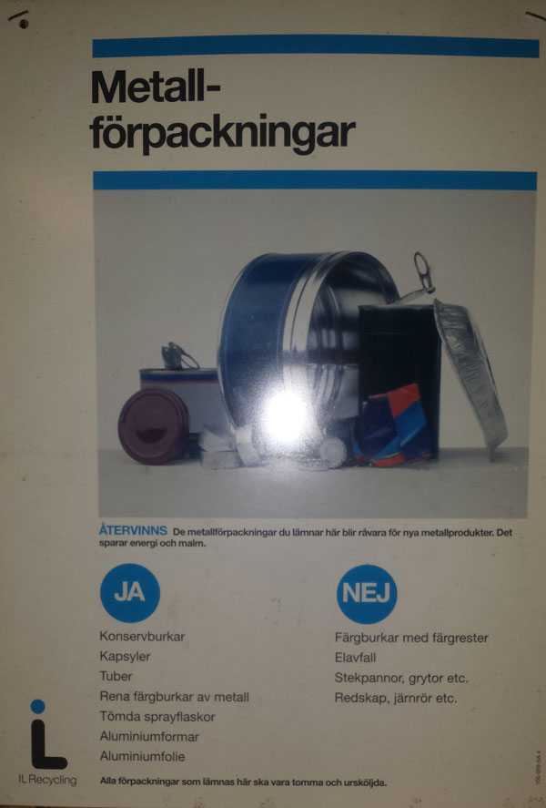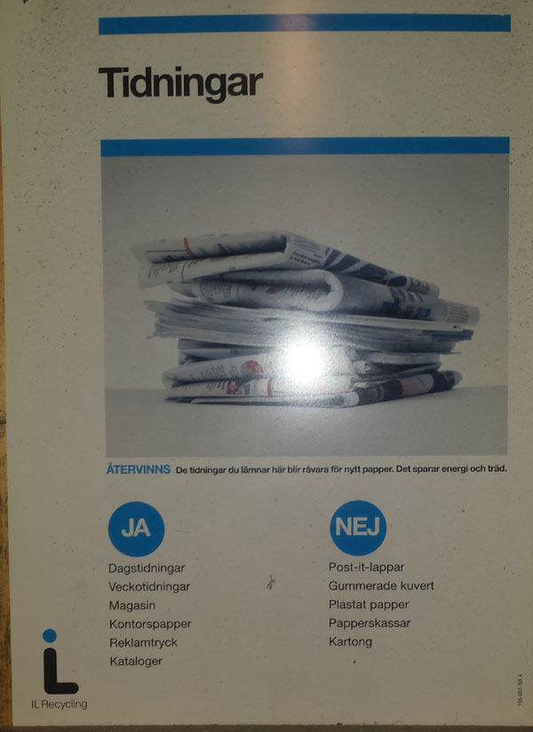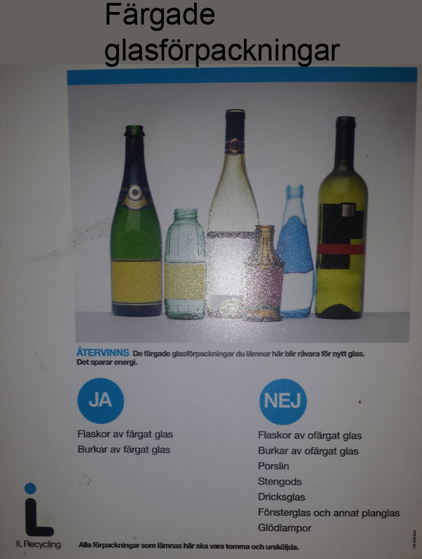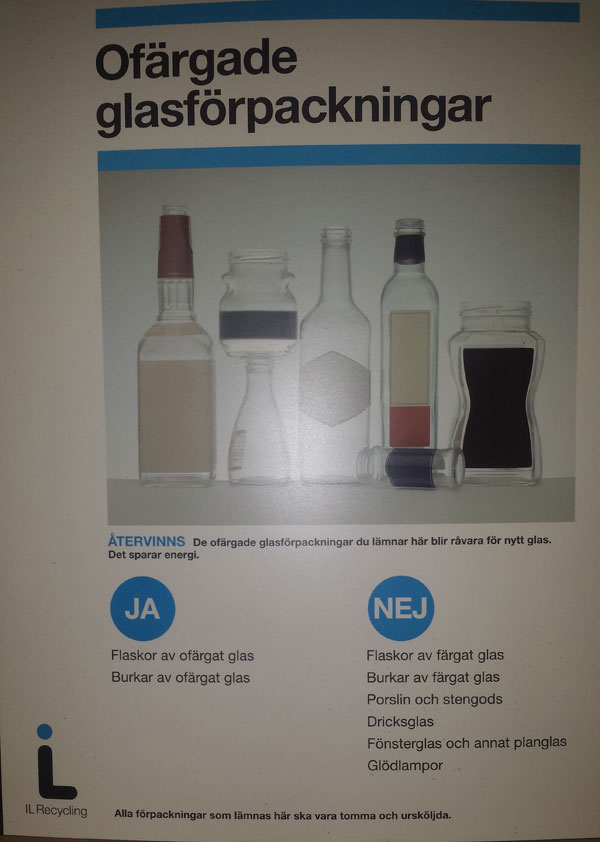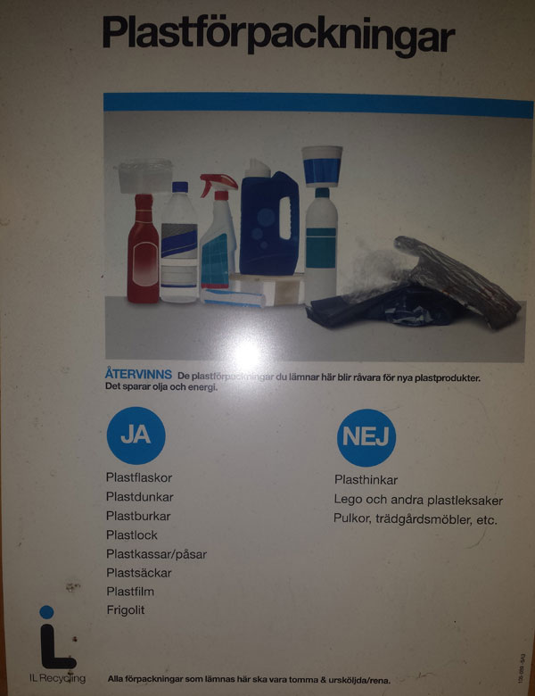 Här finns det 6 olika fraktioner att sortera i, på bilderna ser vi exakt vad vi får kasta där.