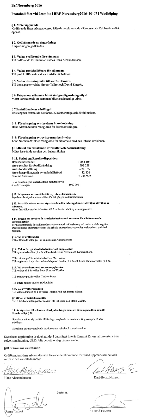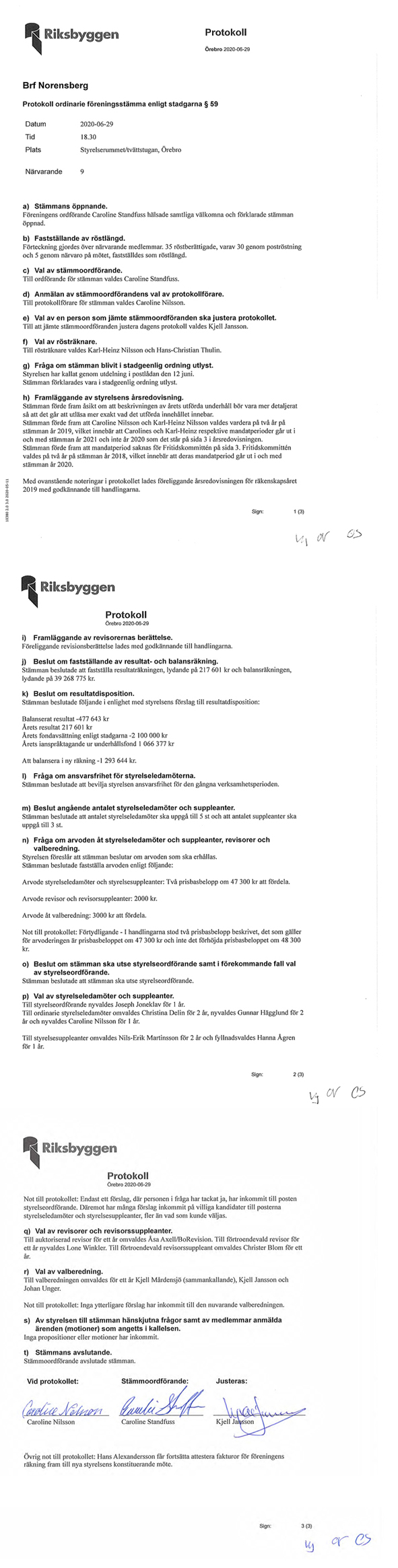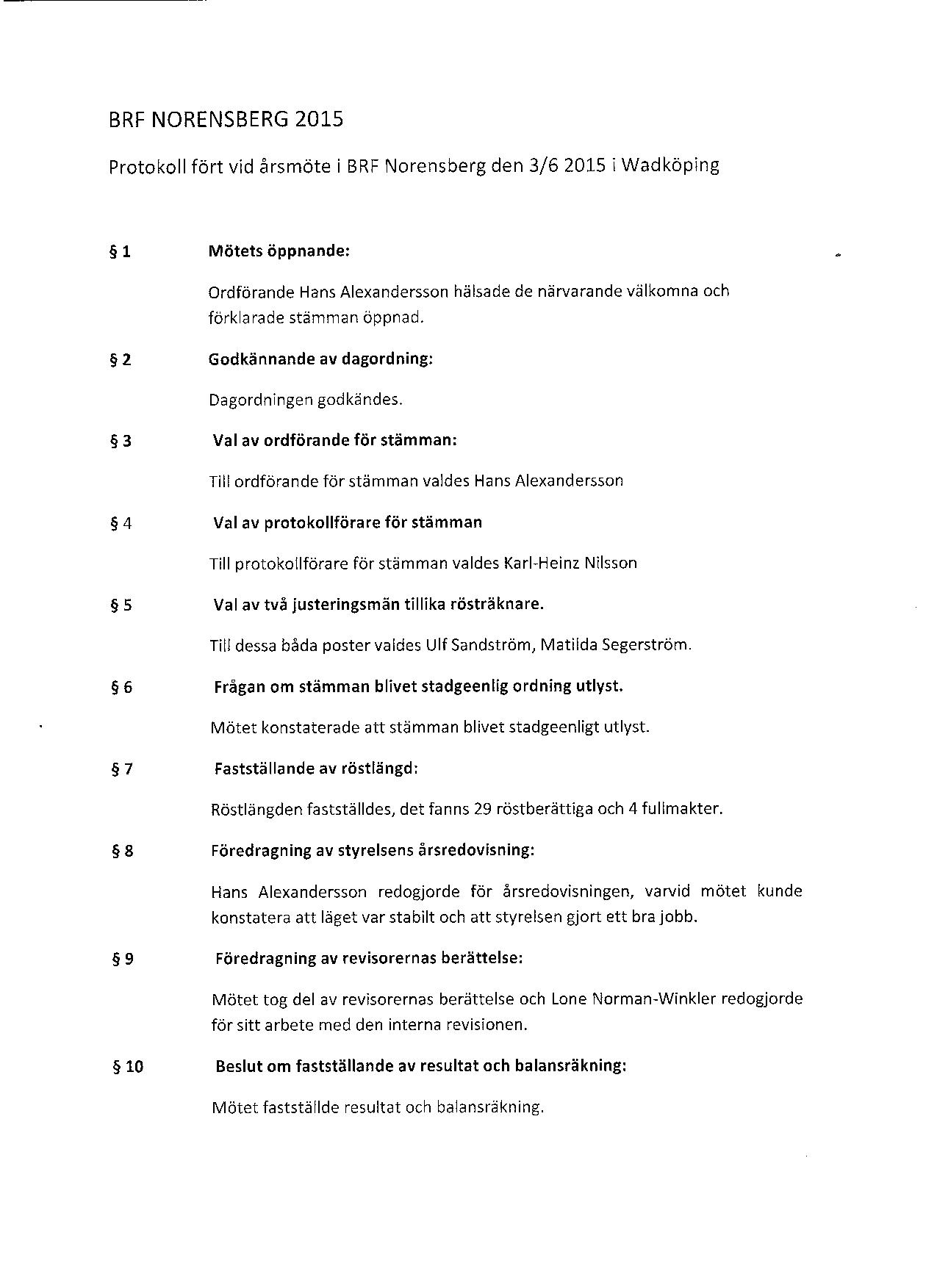 Protokoll fört vid årsmöte i BRF Norensberg den 28 maj 2008 i Wadköping