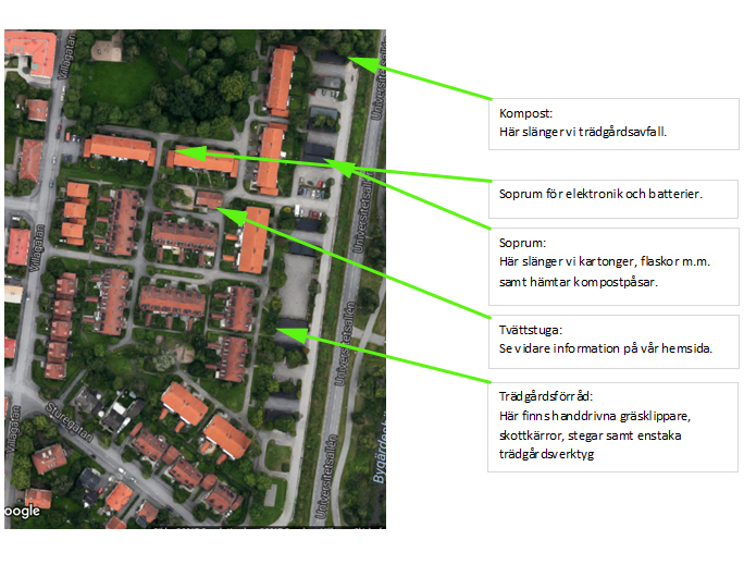 Föreningen består av Villagatan 15-29, Sturegatan 45-55 och Norensbergsgatan 2-158.